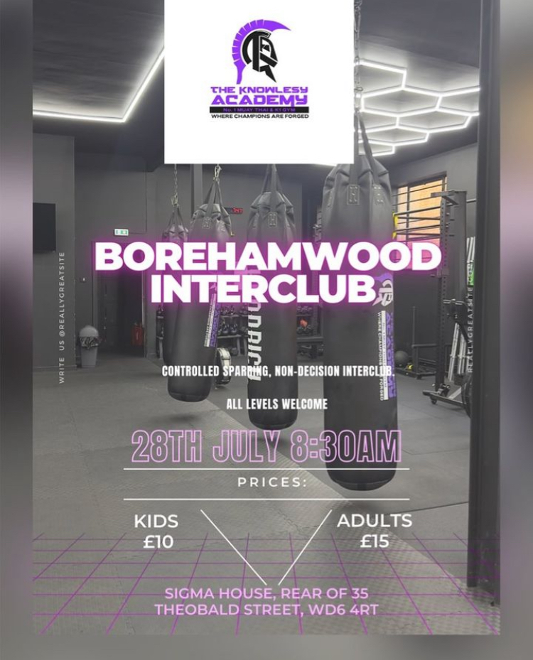 Skip to the content The Knowlesy Academy welcome you to our Borehamwood Interclub. The day will feature exciting Muay Thai bouts, overseen by the team behind ONE Championship World Muay Thai Champion, Jonathan Haggerty.